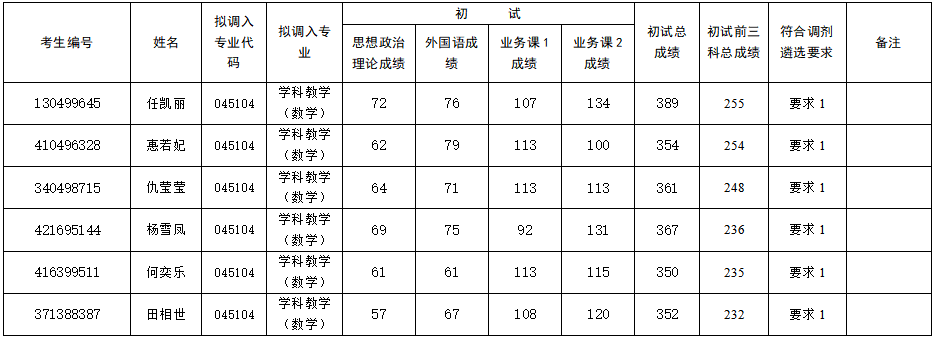 学科教学(数学)专业调剂遴选要求: