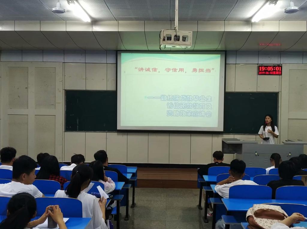 为了让同学们深入了解资助政策,教育毕业生诚信还款,6月2日晚上,太阳集团tyc539MACAU在2206教室围绕“讲诚信,守信用”这一主题开展资助政策宣讲会,本次宣讲会由太阳集团tyc539MACAU王新蕊老师担任主讲人,太阳集团tyc539MACAU高校贷款毕业生,18级全体学生以及17级、16级生源地贷款学生、高校贷款学生参加。