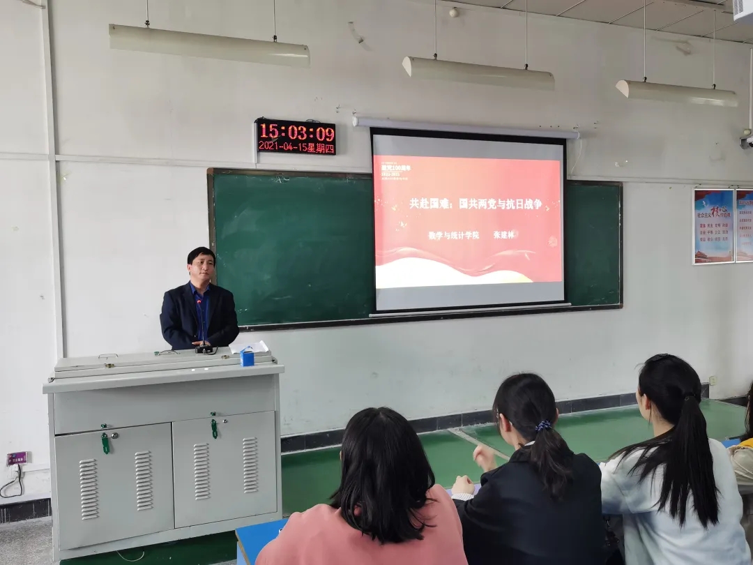为迎接建党100周年,深入学习贯彻习近平总书记在党史学习教育动员大会上的重要讲话精神,引导师生学史明理、学史增信、学史崇德、学史力行,我院于4月15日举办《共赴国难:国共两党与抗日战争》专题讲座,院党委书记张建林担任主讲人,学生代表参加讲座。