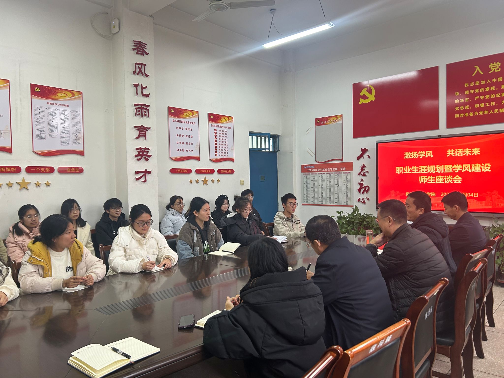 会上,学生代表积极发言,分享了自己的学业规划、职业目标,以及目前在学习、生活、未来人生规划上存在的困惑和想法。与会领导老师对于同学们提出的问题一一耐心解答并给予具体建议。