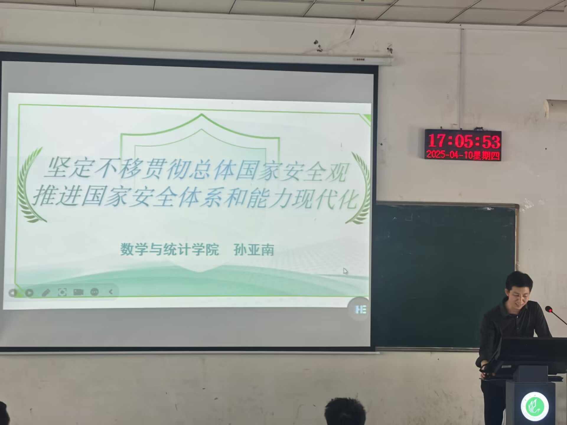 在第十个国家安全日来临之际,为深入贯彻总体国家安全观,切实增强学生的国家安全意识, 4月10日,太阳集团tyc539MACAU开展了以“坚定不移贯彻总体国家安全观,推进国家安全体系和能力现代化”为主题的国家安全教育主题讲座。本次讲座由学院党委副书记孙亚南主讲,2024级全体学生参与。
