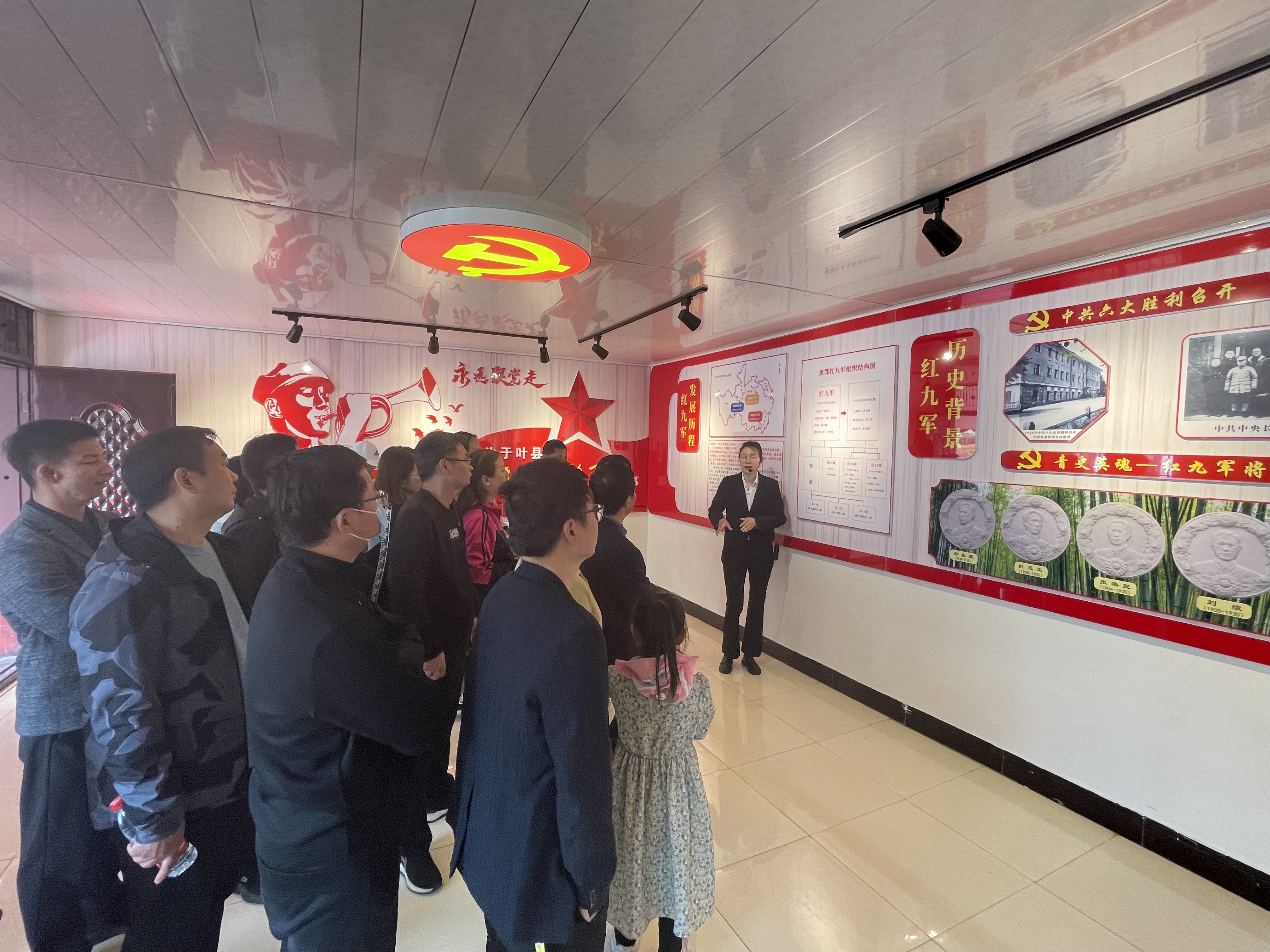 在中国工农红军第九军纪念碑前,全体教师党员佩戴党员徽章,面对党旗,举起右手,紧握拳头,重温了入党誓词,再次宣誓了入党时对党许下的庄严承诺。宣誓结束后,大家向“红九军”烈士纪念碑三鞠躬,表达对先烈们的崇高敬意和深切哀悼。随后,在烈士纪念馆内通过参观历史图片资料,了解红九军的历史背景和发展历程,聆听英雄们英勇奋战的故事,回顾在中国共产党领导下进行的波澜壮阔伟大斗争,激励着同志们时刻都要做到不忘初心、接续奋斗。