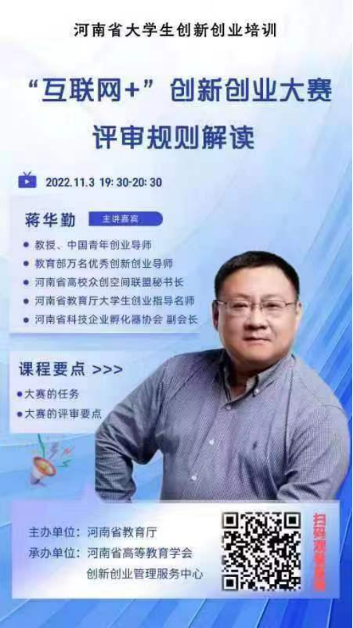 为了启发高校大学生的创业创新思维,了解创造的方法,培养科技创新精神和实践能力。11月3日晚,太阳集团tyc539MACAU组织师生共同观看了河南省教育厅大学生创新创业系列培训讲座第二讲,本次讲座由蒋华勤教授主讲。