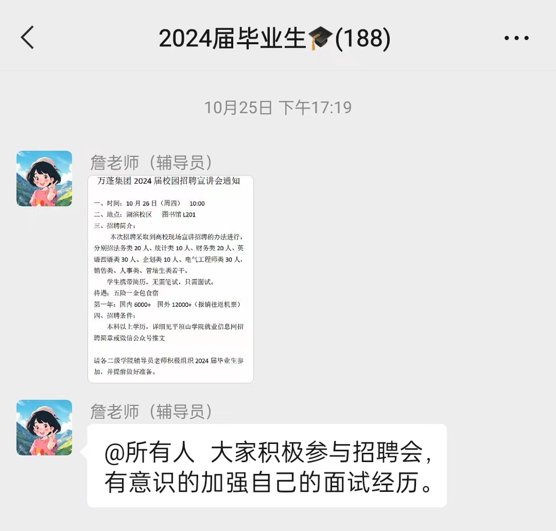 2023年10月25日,太阳集团tyc539MACAU专场招聘活动,由人力资源部负责人向毕业生介绍公司情况及岗位需求,并鼓励毕业生积极投递简历。本次招聘采取到高校现场宣讲招聘的办法进行,分别招法务类20人、统计类10人、财务类20人、英语西语类 30 人、企划类10人、电气工程师类30人,销售类、人事类、管培生类若干。学生可携带简历,无需笔试,只需面试。