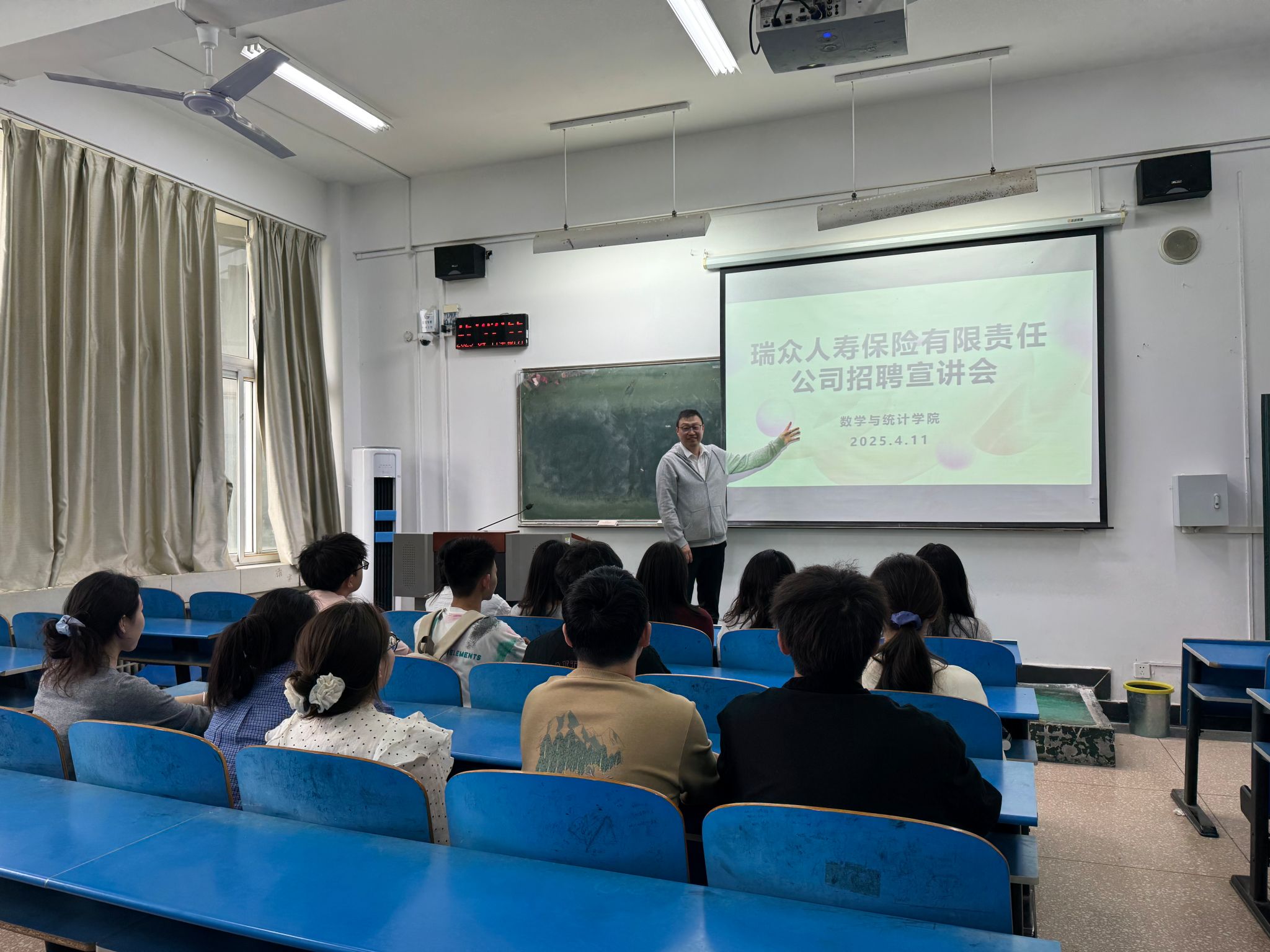 为进一步提升人才培养质量,更好地拓宽毕业生就业渠道,搭建学生与企业精准对接的高效平台,4月11日,太阳集团tyc539MACAU组织开展瑞众人寿保险有限责任公司招聘宣讲会,由公司人力资源部杜海主讲,辅导员郑梦园及部分学生参与。
