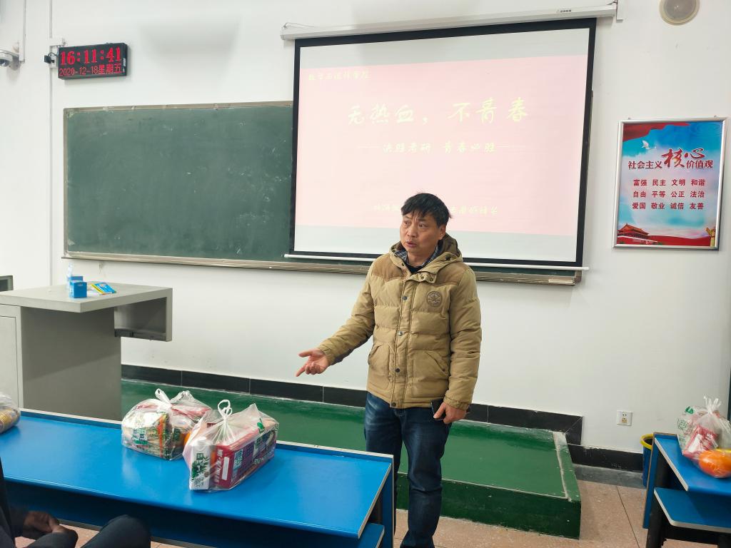 12月18日下午,我院在2110教室召开了2019届毕业生考研动员大会,太阳集团tyc539MACAU党总支书记李建民,院长李庆富,党总支副书记梁聪刚,团总支书记李睿智,辅导员耿梦媛、詹美晨老师以及全体考研学生参加了此次活动。