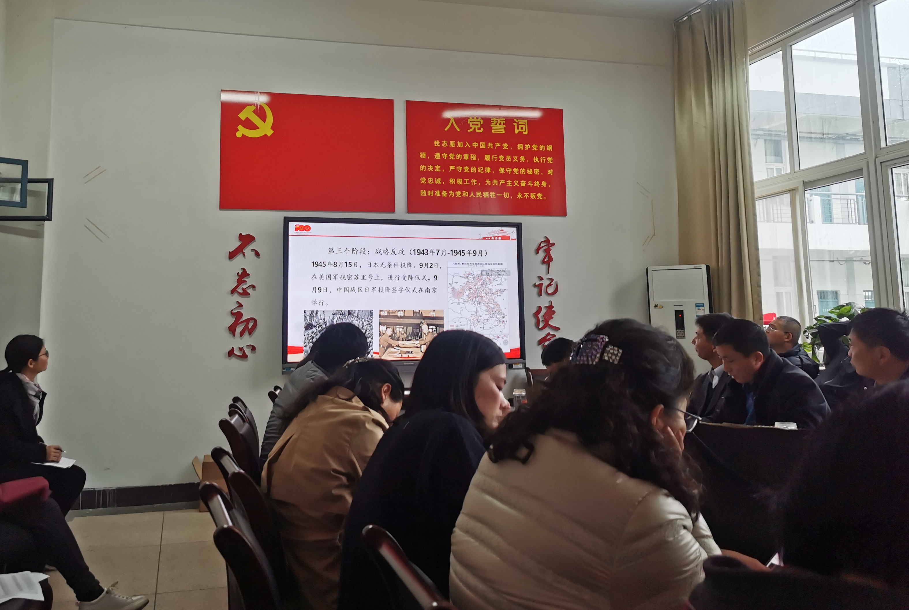 张书记首先以党史学习教育动员大会上习近平总书记发表的重要讲话为切入点,强调了历史是最好的教科书,也是最好的清醒剂、营养剂。重视党史学习教育是我们党的优良传统,是我们党领导中国革命、建设、改革开放不断取得胜利的重要原因。紧接着,张书记通过丰富翔实的资料,生动细致的讲解,回顾了抗日战争的三个阶段;正确评价了国民党在抗日战争中的表现;充分阐释了中国共产党在抗日战争中的中流砥柱的作用;阐明了弘扬伟大抗战精神的重要意义。