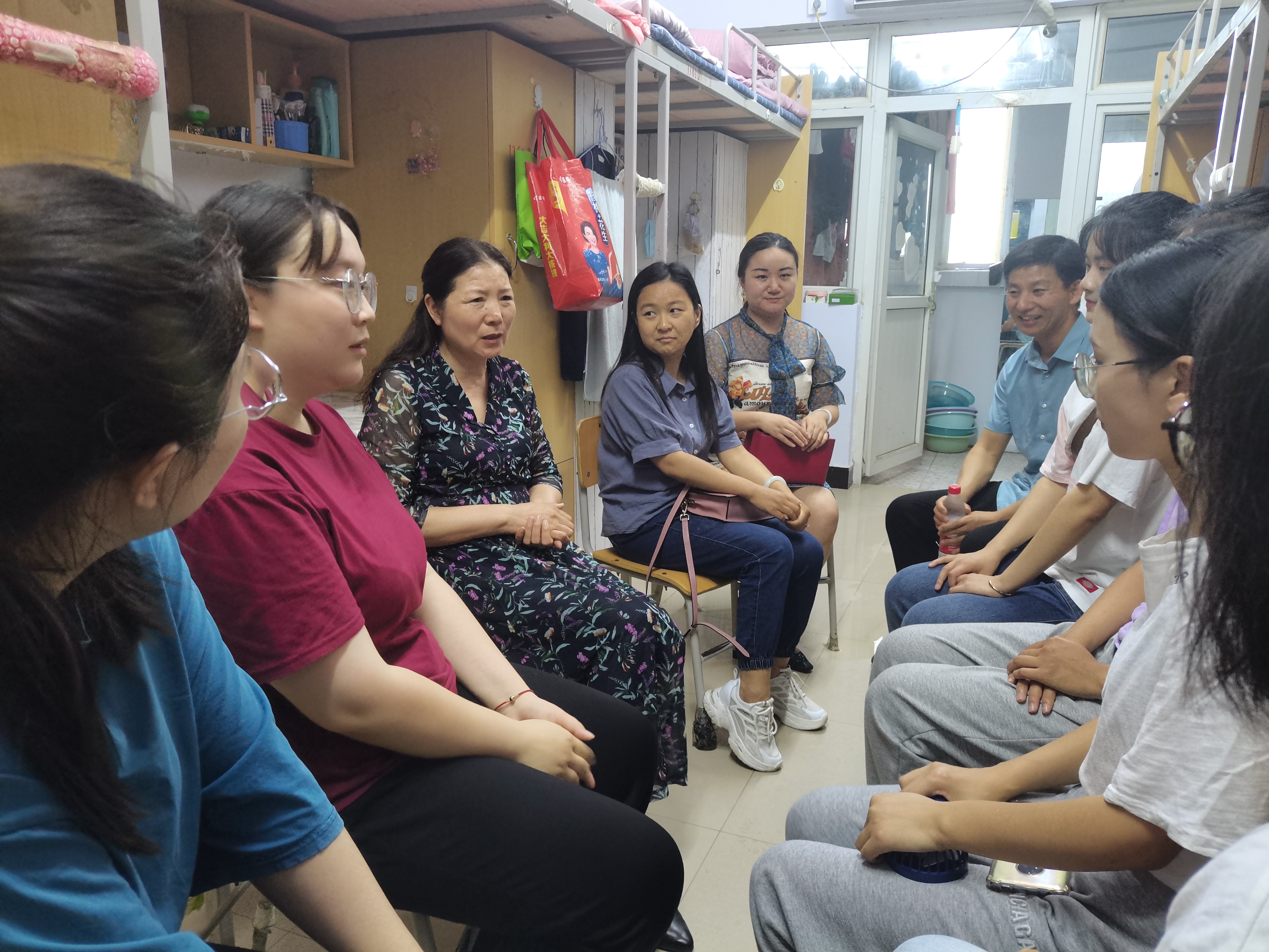 随后,程永华前往13号宿舍楼,走访了20级数学与应用数学专业学生宿舍,她与同学们聊学习、谈理想、话成长,并提出四点要求:一是希望同学们从学习百年党史中汲取奋进的力量,坚定信仰,勇担使命,把个人的梦想和国家的梦想融合在一起,积极参加各种有意义的实践活动,不断丰富自己的知识和阅历,以优异成绩献礼党的百年华诞;二是弘扬严谨勤奋的优良学风,利用好学校良好的环境、资源和设施,努力学习专业知识技能,提升自身的综合素质;三是充分发挥学生自我教育、自我管理、自我服务、自我监督的作用,营造良好的宿舍文化氛围,创建文明宿舍;四是落实好宿舍防火、防盗、防骗等措施,时刻绷紧安全这根弦。针对学生反映的考研自习空间不足等问题,程永华表示,学校会进一步树立以学生为中心的理念,不断加强教学管理、后勤保障等工作,为学生创造更好的学习、生活和育人环境。