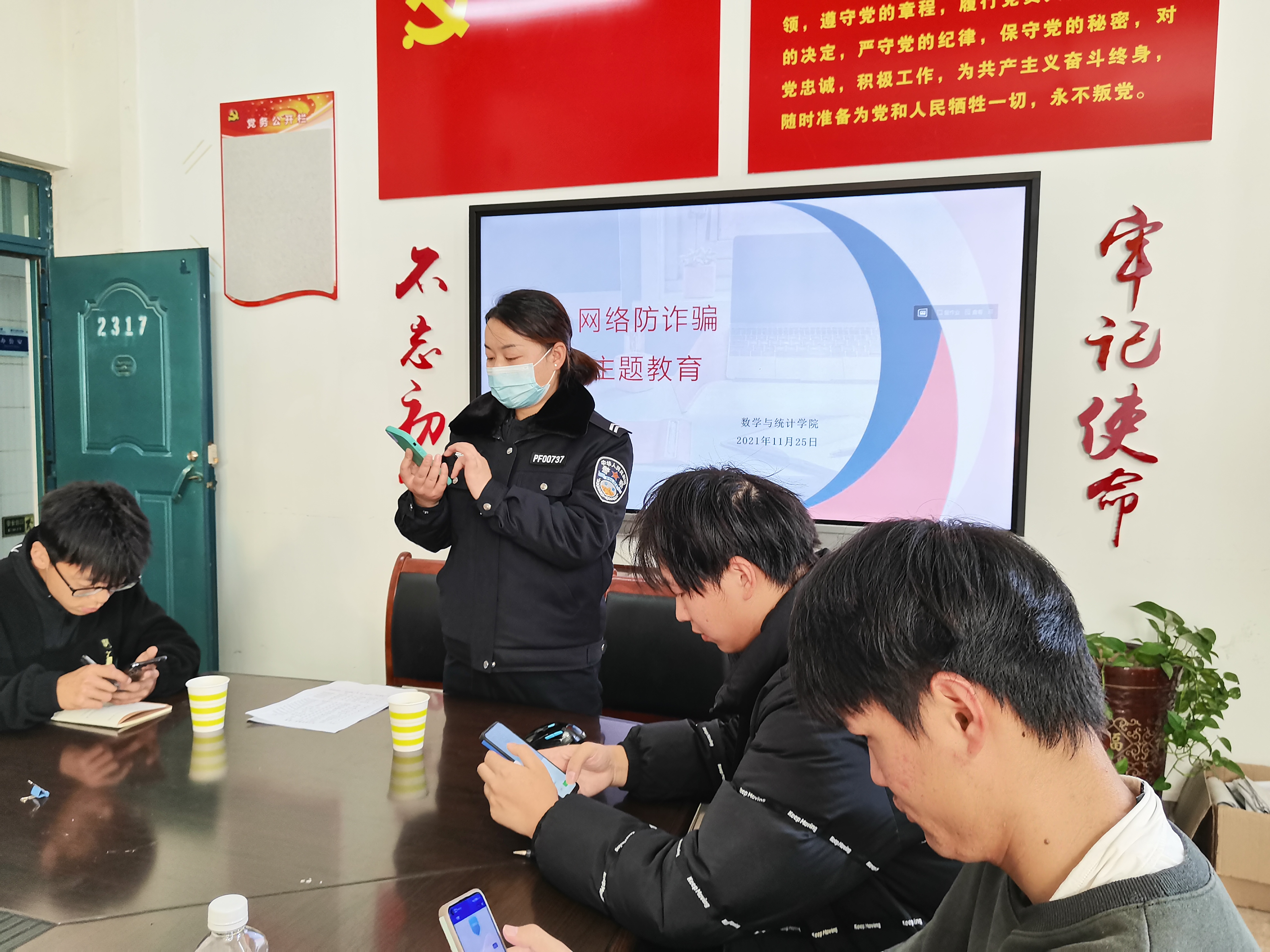 活动中,张警官围绕“电信网络诈骗犯罪总体形势和防范措施”,传达学习了习近平总书记关于打击治理电信网络诈骗犯罪工作的重要指示精神,介绍了电信网络诈骗的发展特点、最新形式和防范措施,列举了发生在师生中的多起电信诈骗案例,并剖析了案例背后的防范意识缺失问题,重点对几种常见的诈骗手法进行了启发式讲解。活动最后,史警官强调,全体辅导员要不断地给学生“敲警钟”,利用形式多样的教育方式进行宣传教育,并督促同学们安装国家反诈中心APP,引起同学们对防范电信诈骗的高度重视,切实提升教育效果。