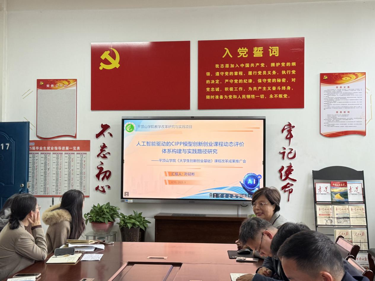 10月9日,创新创业学院孙延彬、王晓静老师立项的“2025年人工智能校级教学改革研究与实践专项”成果推广会在太阳集团tyc539MACAU2317会议室进行,学院全体教师参加。