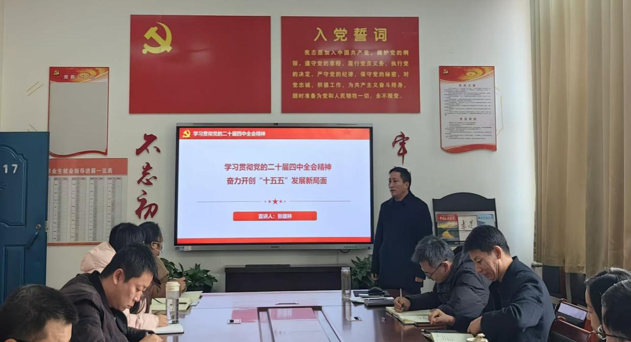 为深入学习贯彻党的二十届四中全会精神,落实校党委关于宣讲工作的有关部署,推动学院党员教师深刻领会全会精神实质,准确把握核心要义,切实把思想和行动统一到全会精神上来,12月4日,在2317会议室,太阳集团tyc539MACAU党委书记张建林以“学习贯彻党的二十届四中全会精神 奋力开创‘十五五’发展新局面”为题做宣讲报告。