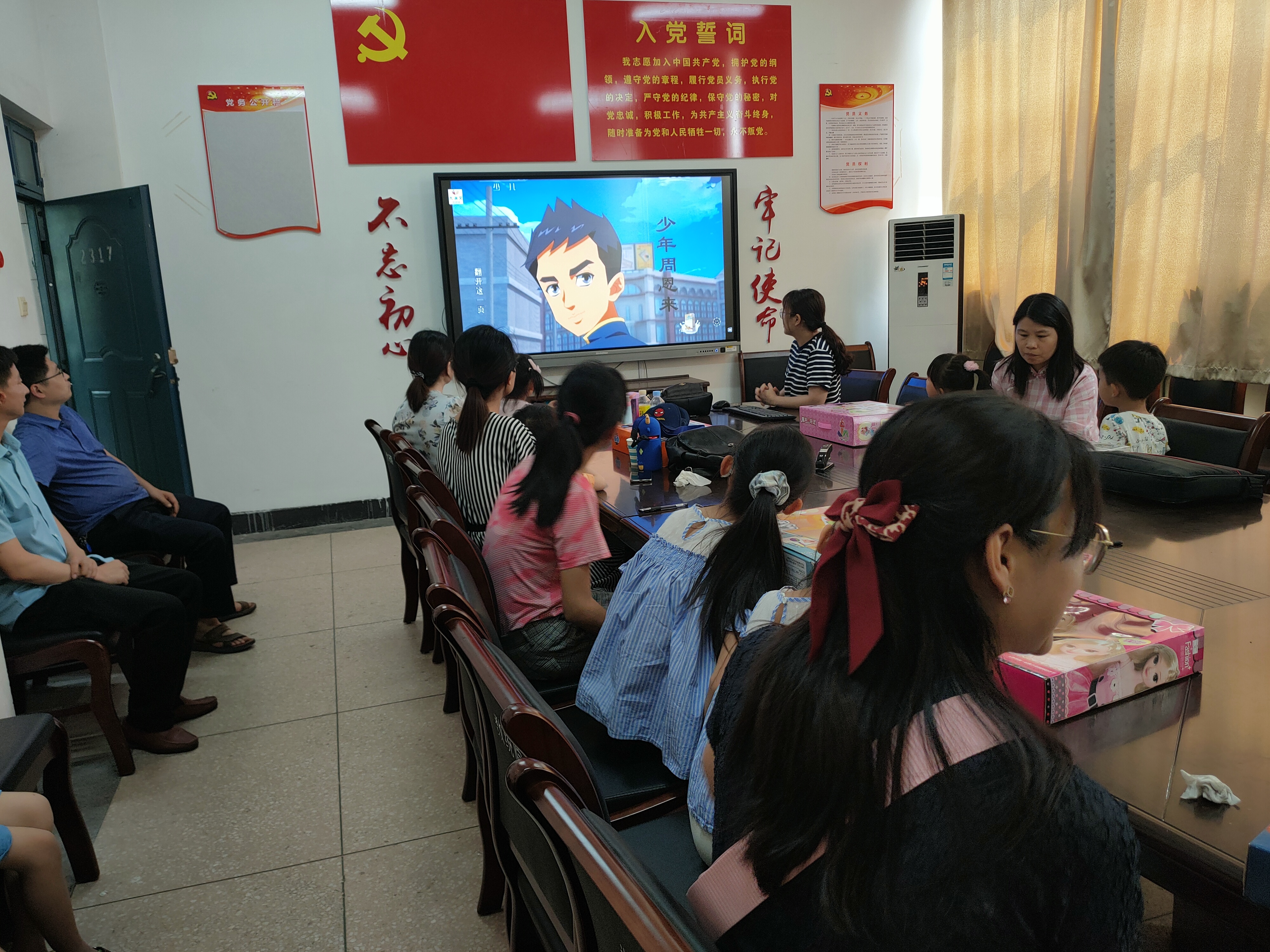 小朋友们首先观看了《朱德的扁担》和《为中华崛起而读书》红色动画短片。通过观看红色影片,使小朋友们进一步接受红色文化的熏陶与浸润,坚定听党话跟党走的意志与决心。
