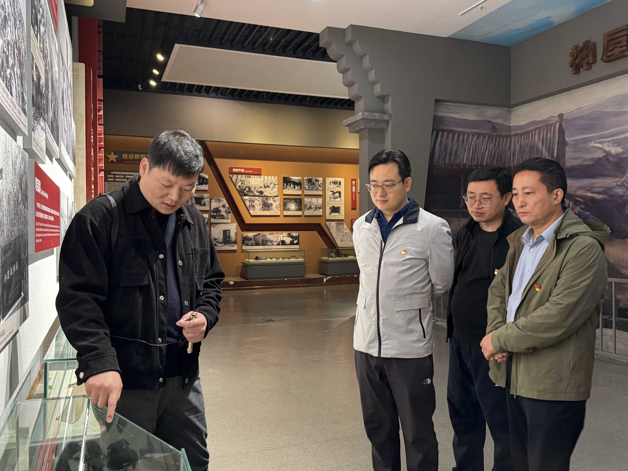 在纪念馆内主题壁画前,全体党员教师重温入党誓词,铮铮誓言不仅是对党的庄严承诺,更是对革命先辈们的深情告慰。在讲解员的带领下,同志们怀着崇敬与肃穆之情,依次参观了“豫西沦陷、挺进豫西、抗击日寇、红色曹沟、走向胜利、风云人物、情系豫西、铭记历史”等展区,以及原河南省第六专区党政军机关办公旧址和窑洞、炮楼、地道等历史遗迹,回顾豫西沦陷的艰难处境、八路军挺进豫西的英勇壮举以及创建抗日根据地的伟大历程,深刻感悟革命先烈不畏艰险、不怕牺牲的革命精神和共产党人永不褪色的初心使命。